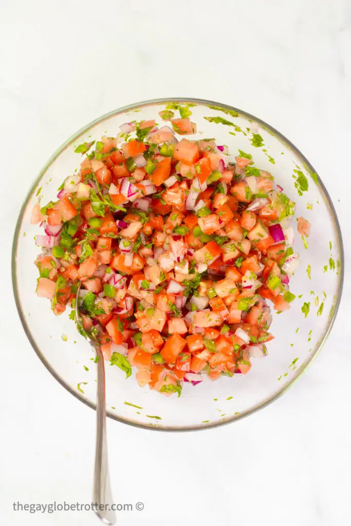 Authentic pico de gallo doesn’t need too many spices and additions, the fresh ingredients do all the work for it.